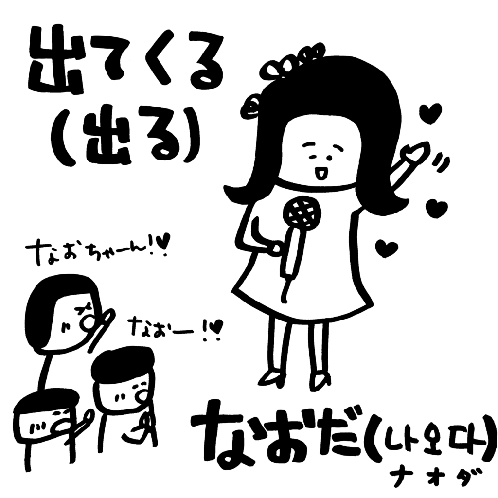 自分の身近にいる人や昔の友だちに「なお」という人がいれば、その人がステージや舞台、テレビに出てくるイメージで覚えてみてください。